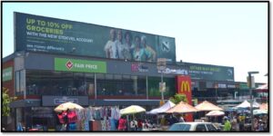 DESCRIPTION : Front illuminated 210m2 structure mounted onto the Roof at Bara Square Shopping Centre facing Bara Hospital Pedestrian Bridge. The site dominates the entire Bara Square/Taxi Rank precinct. Bara Square houses major banking clients such as Capitec, Standard Bank, Nedbank, Hollard, retailers such as U Save, Pick ‘n Pay, Pep Cell, McDonalds, Mr Price & JD Group etc.. The site can also be seen by vehicle exiting Bara Hospital Main entrance as well as traffic traveling along Chris Hani Roadetc.