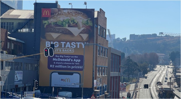 DESCRIPTION : Located on the cnr of Albertina Sisulu Rd and Bertrams Rd, this large format mega billboard, targets all vehicles and pedestrians travelling between Bedfordview, Houghton, New Doornfontein and the Johannesburg CBD. Opposite Ellis Park and the JHB Athletics Stadium.