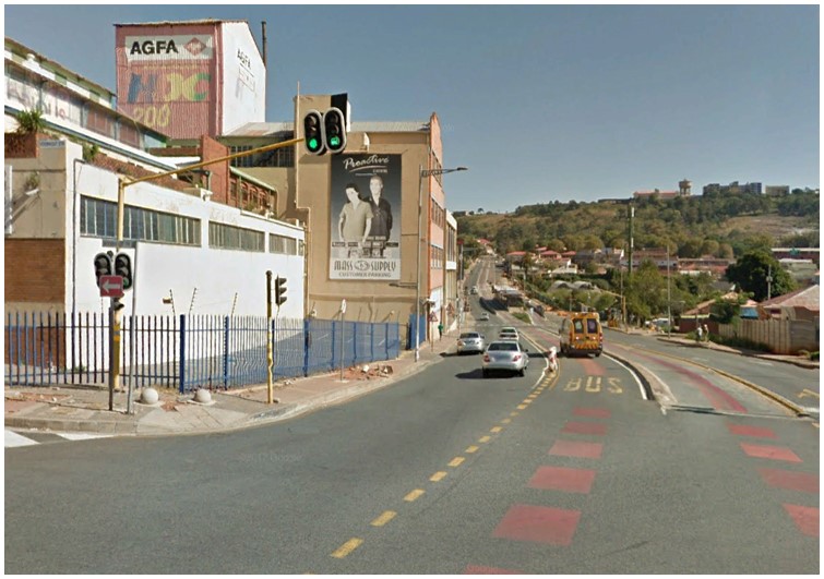 Bertrams, New Doornfontein (2) SITE NUMBER : BB26-15 DESCRIPTION : Cnr Bertrams Rd and Voorhout St, New Doornfontein. Great run up SIZE: 10m × 5m TRAFFIC : ± 30,000 Vehicles per day + Ellis Park Traffic GPS CO-ORDINATES : -26.196489, 28.066753