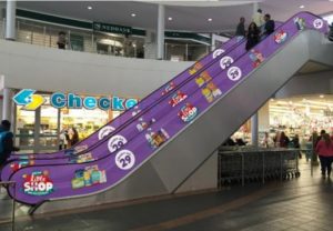 DESCRIPTION : Centurion Lifestyle centre. Corner of Lenchen ave and Old Johannesburg rd, Centurion - ESCALATORS & WALL SIGN - Package . Located directly outside Checkers entrance, within the banking court