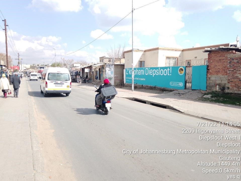 Diepsloot, Johannesburg (2) SITE NUMBER : BB99-53 DESCRIPTION : Located on main road, Coming from Chuma Mall, route to Diepsloot Police Station SIZE: 2m x 10m TRAFFIC : TBC GPS CO-ORDINATES : -25.925981, 28.008364