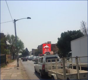 Johannesburg, Yeoville SITE NUMBER : BB33-15 DESCRIPTION : This road is located right on the corner of Joe Slovo and Raleigh street at Yoeville. It is used to exit Yeovile joins the M1 highway via next to killerney mall. Close to Wits Medical school and Doornfonten UJ. SIZE: 12m x 15m TRAFFIC : 238,000 Vehicles per month