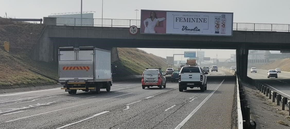 DESCRIPTION : This site is situated on the R21 Highway towards the Pomona road exit. Commuters travelling to Pretoria from O.R. Tambo International airport and surrounding areas use this route. This is an iconic site, being a bridge structure situated over a national highway.