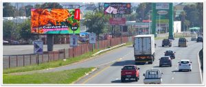 DESCRIPTION : Located on the M1 South Highway, off the M17 onramp into the De Villiers Graaff Motorway (Gold Reef City). The digital screen captures audience / traffic on the R553 (Golden Highway) and coming from Soweto, Eldorado Park, Lenasia (South of Joburg), driving into the Joburg Inner City and Sandton/M1 North side. Slots: 10 Max. Flightings: 720 per day / 21 600 per month. 15 Seconds