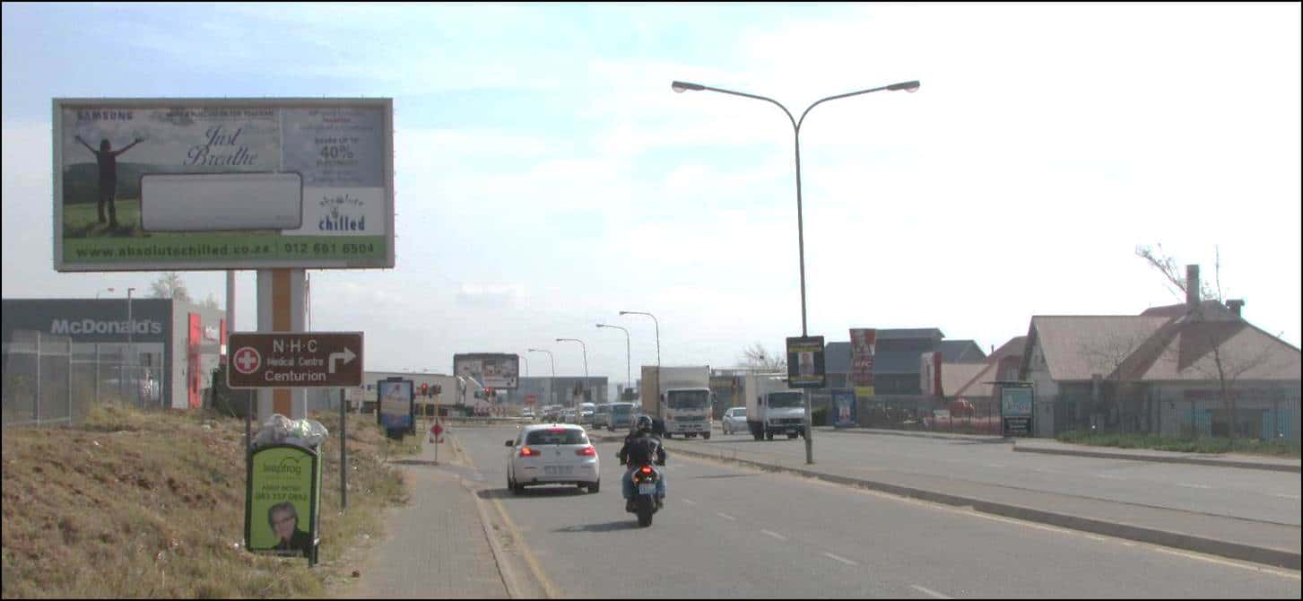 Midstream – Olifantsfontein (3) SITE NUMBER : BB11-29 DESCRIPTION : On Erasmus Drive opposite the Grey Owl Shopping Centre, traffic off Brakfontein RD SIZE: 3m x 6m TRAFFIC : 35,954 vehicles per day GPS CO-ORDINATES : -25.909240, 28.162062