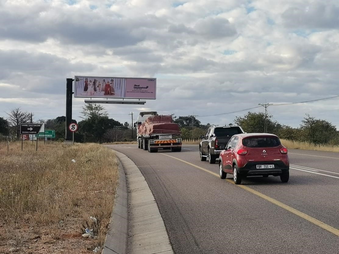 MUSINA EXIT SITE NUMBER : BB13-133 DESCRIPTION : This site is situated on the N1 Highway at the main entrance into Musina and passes through the main town of Musina. There are numerous chalets, accommodations, car dealerships and take-aways within 5km after passing this site. SIZE: 3m x 12m TRAFFIC : OMC IMPACTS : 93 134 GPS CO-ORDINATES : -22.362620, 30.033884