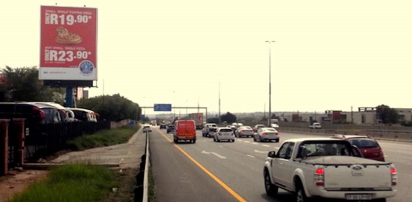 DESCRIPTION : N1 Ben Schoeman Highway facing traffic travelling from Sandton, Four ways , Waterfall and Midrand towards the N14 interchange , Pretoria East , Pretoria West , Menlyn and Pietersburg. This billboard is in a unique position. It is the last billboards before the interchange and catches all traffic travelling to Pretoria.