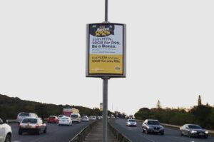 DESCRIPTION : Northeast Expressway Mini-Billboards, East London. Sold in a run of three (double sided) These mini-billboards are positioned on the centre meridian of the Northeast Expressway, capturing motorist in both directions. These 3 mini-billboards are positioned between Nahoon Valley and Vincent Heights.