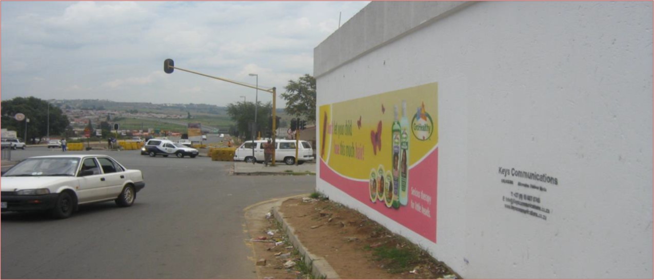 (Orlando East) Soweto Highway (1) SITE NUMBER : BB25-01 DESCRIPTION : Wall Mural - (Orlando East) Soweto Highway SIZE: 10m x 2m TRAFFIC : 1 000 000 Pedestrian/Vehicles per day