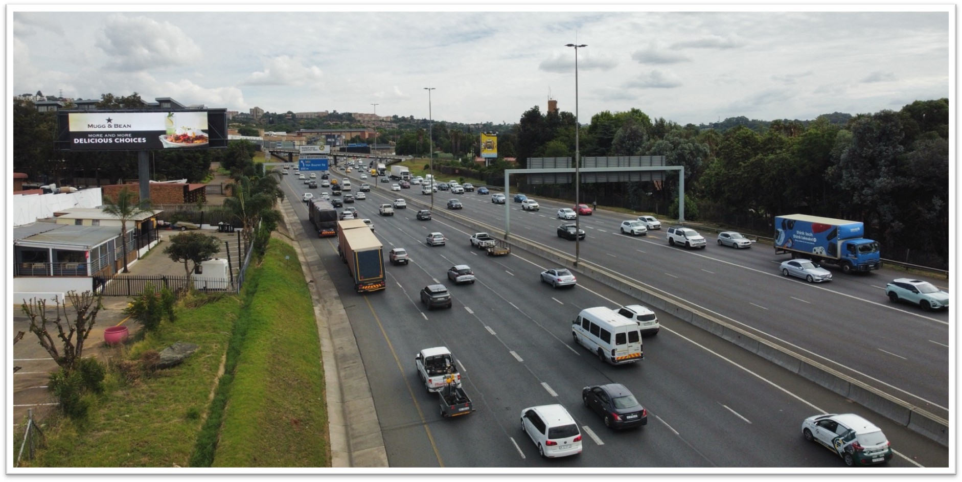 DESCRIPTION : Located on the N3 Gilloolys Highway, just before the Van Buuren Off-Ramp, this digital billboard faces traffic travelling from Gillooly’s Interchange, Edenvale, Linksfield, Sandton and Pretoria heading towards Bedfordview, Alberton, Germiston and the M2 highway. Slots: 10 Max. Flightings: 720 per day / 21 600 per month. 15 Seconds