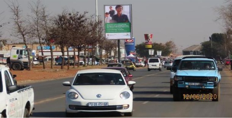 DESCRIPTION : This billboard is located next to Naledi Mall, first and oldest Vosloorus Mall with loyal and captured client base of more than 170 000 per month. The billboard is also opposite two main filling stations, which are main hubs for local taxi population of 1200. The site is also next to government precinct, i.e. community auditorium, clinic, library, post office and municipal offices, which are centrally located at the heart of the township and attract communities from within and surrounding. This precinct offer integrated socio-economic services. The site is also enroute to Vosloorus stadium and swimming pool. This site is the only super-sized billboard in the area.
