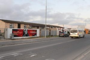 Wall Mural, Gugulethu, Cape Town (2) SITE NUMBER : BB34-75 DESCRIPTION : Site is located on NY3a on a busy bus and taxi way near shell Petrol station and surrounded by local shops. SIZE: 2m x 10m TRAFFIC : 290 000 Vehicles per month GPS CO-ORDINATES : -33.996750, 18.567000