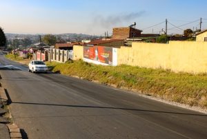 Wall Mural, KwaMashu , KZN (3) SITE NUMBER : BB34-50 DESCRIPTION : This church wall is facing Undlondlo Road, situated near KwaMashu G Community Hall close to local shops, taxi and bus route. SIZE: 2m x 10m TRAFFIC : 210 000 Vehicles per month GPS CO-ORDINATES : -29.742778, 30.984417